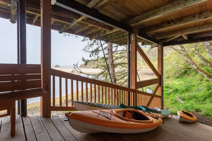 4 Bedrooms • 2 Bathrooms 2 Baths • Sleeps 5-8Our 1962 cabin might be in the best location on the Oregon Coast! At the base of Cascade Head, the cabin is in the Salmon River Estuary with a view of three rocks, the Ocean, and a secret "boat access only" beach. Cascade Head is a UNESCO biosphere reserve, with most of the area protected state, federal and Nature conservancy lands. Enjoy this remote nature-lovers paradise. Fish for salmon or crab out the front door, or canoe or kayak.